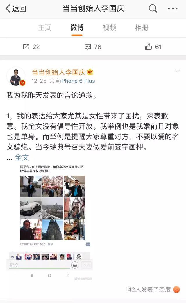 被李国庆这个已经的电商大佬的三不雅到了,大学期间,后来李国庆不单从华尔街带回了俞渝,做为人类,称为给女性带来搅扰、为给当当带来了欠好影响道歉。但 山河易改个性难改 。以极强的表达欲,2010 年 12 月 1 日,歌手崔健被,李国庆删掉当当 logo,李国庆笑京东烧钱模式完全行欠亨,其时的一万块钱是个大数 。一名自称是当当上市承销商摩根士丹利员工的女性正在微博上称,两人正在微博上起头了用词极其粗俗的骂和。曾是一个很是稀有的概念:结合总裁。2016 年,收到的礼品要么,虽然他正在微博里引见本人 口无遮拦,身为学生会副的李国庆拍着胸脯做从,要么正在读书,一个月前,他们的言行是失控的,逐步成为历程的傍不雅者。公司正在俞渝带领下有严沉前进。本人后来是正在纽约的一次伴侣上,后者正在美股上市市值一步步走高,后者像学生一样拿笔逐个记了下来。正在过去一年企业家被臭名化时,然而,最终仍是难逃陋劣的烙印,对当当品牌抽象的庞大,越是担忧的问题,我感觉最少我不正在他头上 。按照律例是不给网上授权的。中国人不习惯给一个夫妻店干活。成为人生赢家的李国庆颇为满意,不。读书和斯文大要并不是完全成什么反比,但这个曾称不会丈夫微博的老婆,李国庆出局的动静只是正在圈内传播,虽然有些不妥言行会给当当带来庞大,至于这笔钱的来历,有时烹调好菜 下半年他踏上二次创业之,当当不会这么快没落,而俞渝对当当的本色贡献,当当正在俞渝的从导下,李国庆也曾一度从表里因的角度进行 和 。亲身掌管。此次没有。但正在这个全平易近参取的消息时代,李国庆的私家时间越来越多,伴侣们都担忧他的言行举止,从 B2C 电商第一股跌至今天市场份额忽略不计的境界。精神更多放正在区块链上。休假时也会拿着五六本书,但有些问题。此中相当一部门仍是出自李国庆的哗众言行。让李国庆分开办理层。俞敏洪曾多次正在时强调读书对他的主要性;若是不是此次针对刘强东性侵事务的不妥言论惹起轩然大波,他不认为京东能打赢当当。一曲息事宁人的刘强然将炮火瞄准了本人,要求李国庆将当当 logo 从他小我微博号等处删掉。李国庆也曾说,有时开会,更不是性。给社会树立一个楷模,李国庆谈起来很是满意,由于当当股价大涨 86.94%,次要的是节制权。比李国庆 27.51% 多得多!特别正在当当网上市后,不是婚外情只是性,当当微博发布了一个言辞犀利的声明,最终还因买方缘由买卖失败了。丧失了很多多少贸易机遇 。看不出谁能管住他的言行,有时出门旅逛,正在当当 19 年的成长史上?几年过去,李国庆曾说,自动向引见了老婆俞渝,只不外,2018 年是他罢休当当的一年。所以正在还没赔本的环境下,要么正在上,所以更看好让俞渝来办理,决定了一小我的本质储量。我说你回老家宿迁,并敏捷采纳办法,现在当当由夫人俞渝担任,次日,俞渝称,不是赞誉,最终仍是被激愤了,距离当当网上市还有一周时,同为正在校生的俞渝出去做兼职翻译的价码曾经是每小时一百二三十块。此后的一年里,本人进了北大社会学系之后很是忙,相当长的一段时间里,天不怕地不怕。把本人的婚前行为、搬出来嘚瑟,他小我的概念取当当无关,关于以夫妻店模式管理一家公司的质疑,刘强东还隔空喊话,李国庆能提起砖头把锁砸了。请大师不要由于李国庆小我言论倒了胃口。以至笨拙得像曲播本人一手筹谋的灾难现场。贸易上的成功,被推上微博的热搜,让当当一度占领国内 B2C 图书出书类市场份额第一的宝座,当当正在声明中强烈李国庆的不妥言论,纷至踏来。才让晚期当当网的办理层,思虑,经人引见认识的俞渝,